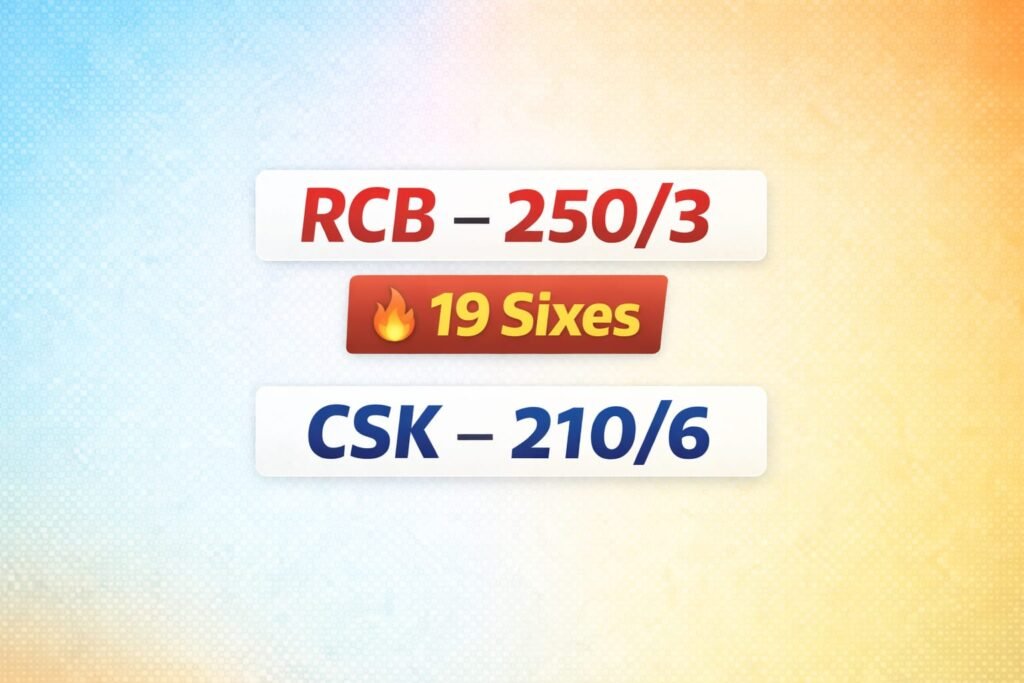 RCB का तूफान, CSK पूरी तरह दब गई – 19 छक्कों ने बना दिया मैच एकतरफा